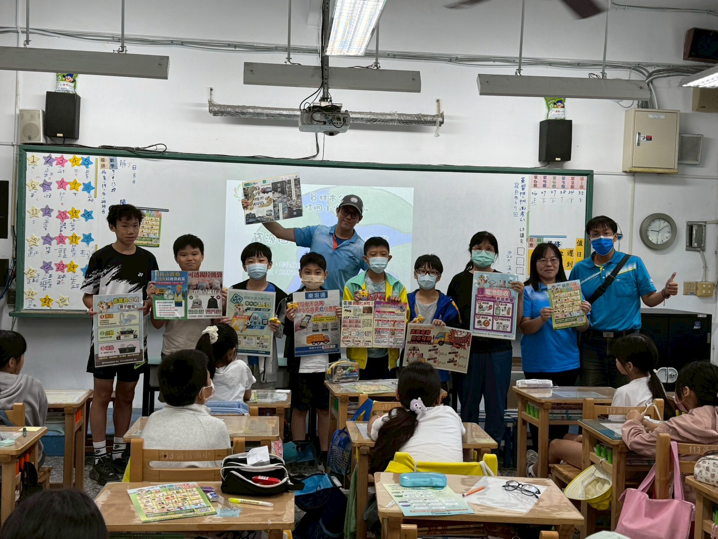 我們是一群僑信國小的高年級生,也是「回收領航員」團隊的成員。剛升上六年級時,我們班被分配到資源回收場當外掃區,發現每到星期三早上的回收時間,回收場總是擠滿人潮,大塞車的狀況宛如戰場。為了解決這個全校性的問題,我們化身為校園偵探,主動出擊!我們不依賴輕鬆的線上表單,而是親自拿著問卷走入各班進行面對面的實地訪談。此外,我們還在回收場高處架設攝影機進行縮時錄影,以鐵證如山的客觀數據,揪出了兩大痛點:一是各班把垃圾混成一袋到了現場才慢慢挑揀所造成的「漏斗效應」;二是星期一發放的鮮奶瓶被迫在教室囤積兩天,成為發酵發臭的「氣味定時炸彈」。透過自主的實地探究與科學實證,我們展現了主動發現與思考問題的能力。
