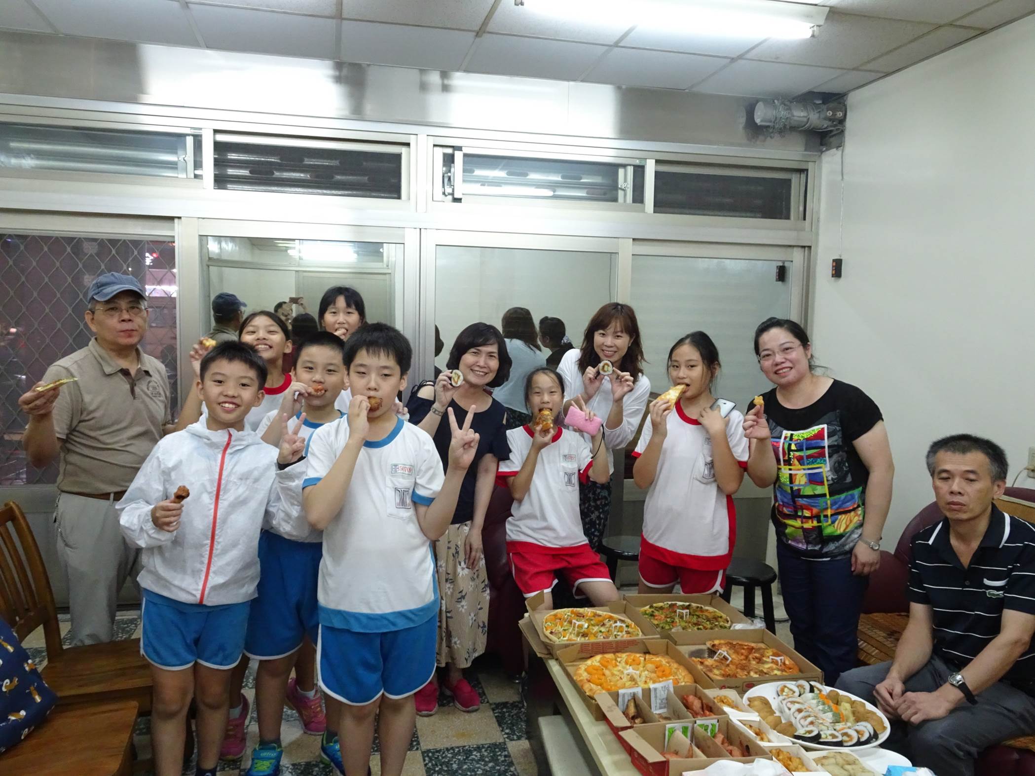 凱元媽媽熱心準備披薩、壽司以及自己親手製作的蛋糕,讓大家吃得津津有味,也使青
