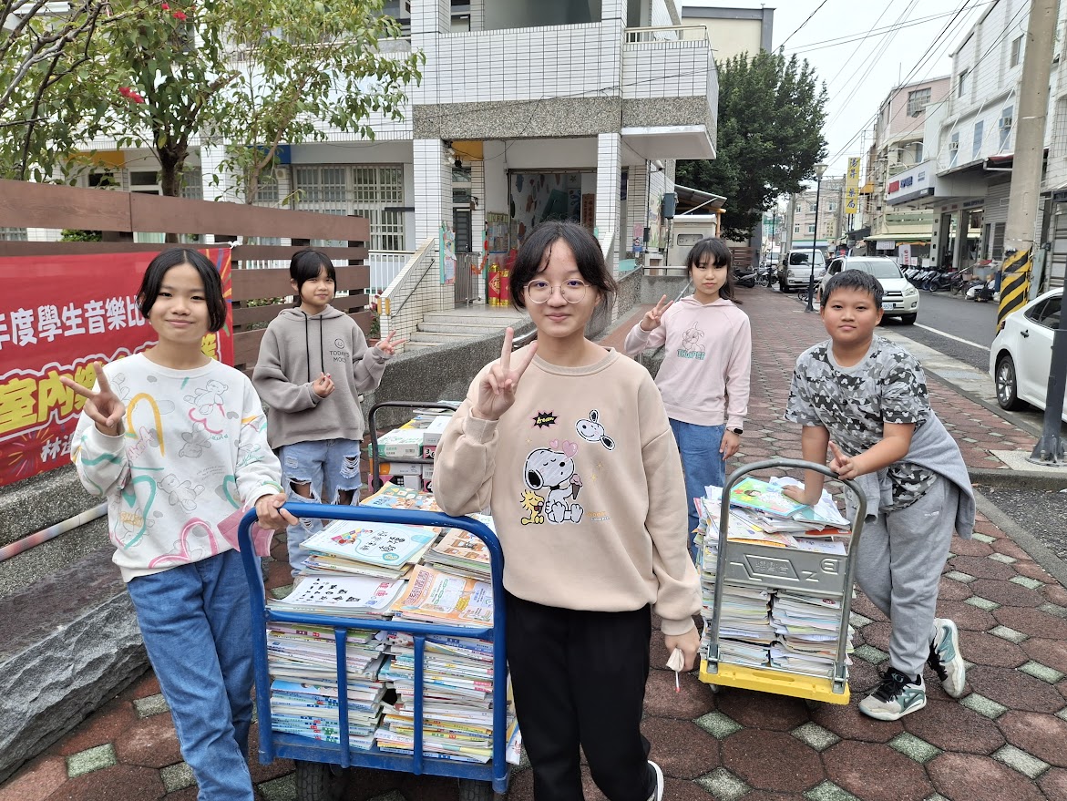 搬完書,我們用推車把回收書送到資源回收場,沒推過推車的我們沿途一直掉書,或是將車子推到差點撞牆,可說險象環生,可是也趣味橫生,使得我們都忘了搬書的辛勞,只記得回收的樂趣。原來幫助人是這麼輕鬆,也這麼有趣。