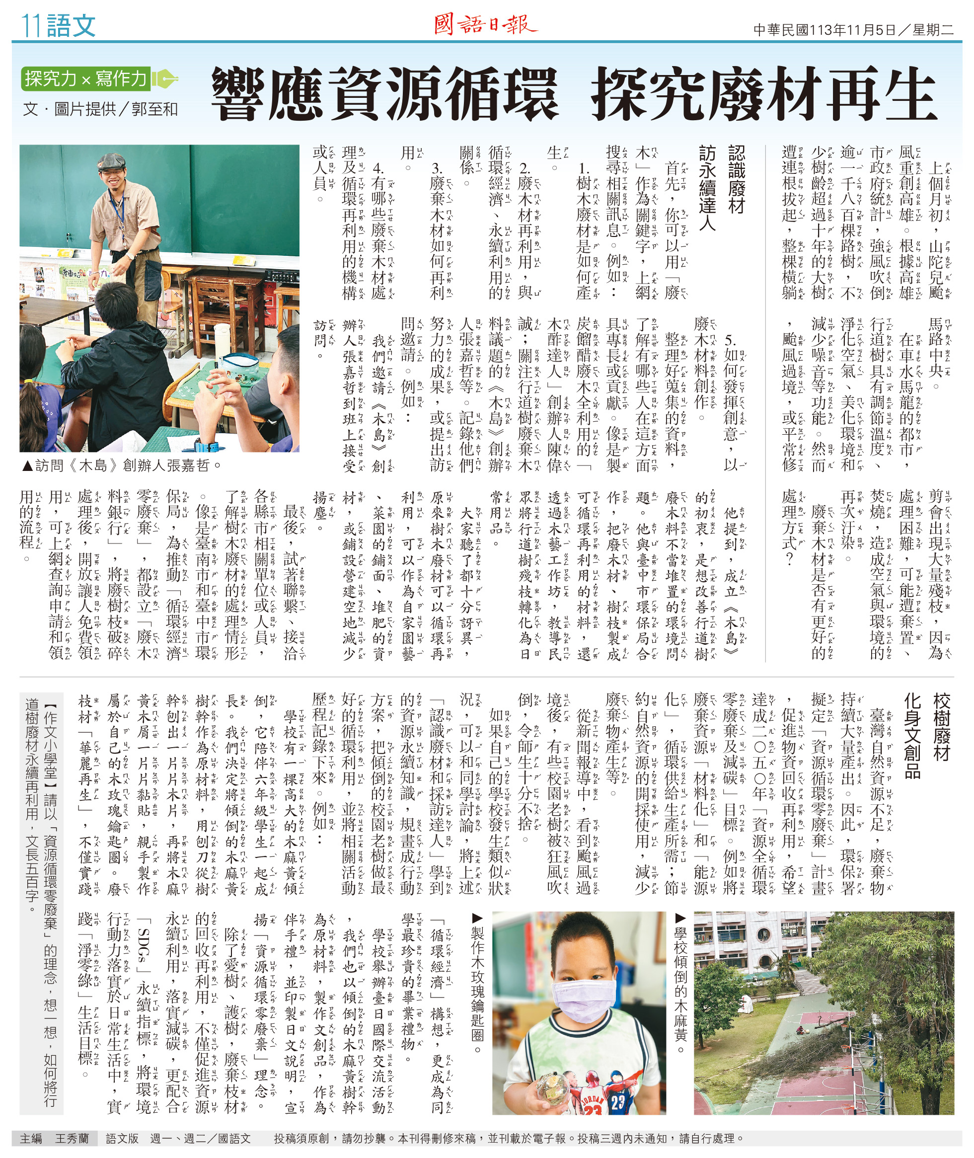 一、自發性:從孩子日常生活環境著手,讓學生主動發現問題(例如校內一棵木麻黃突然倒塌),進而運用設計思考規劃解決策略並採取實際行動。